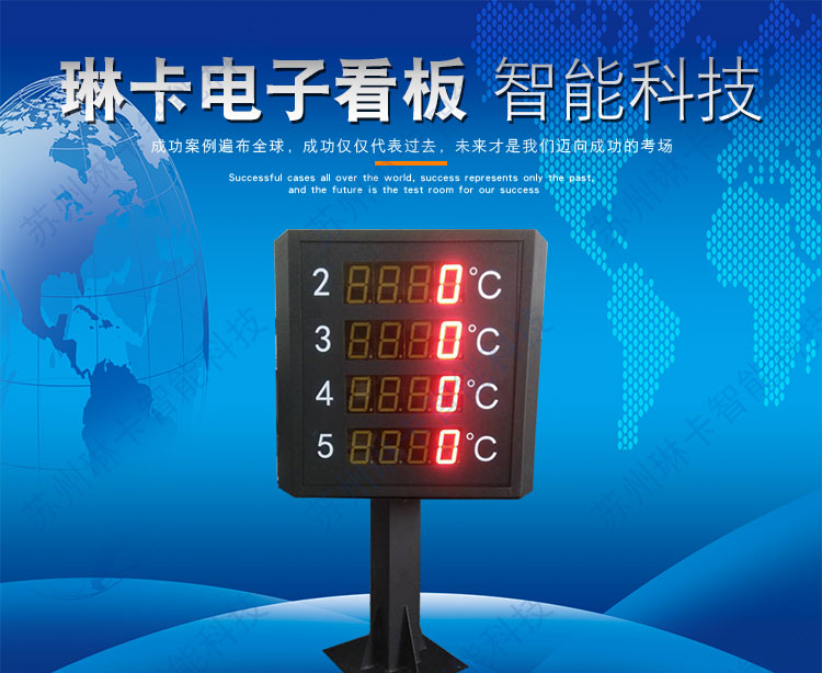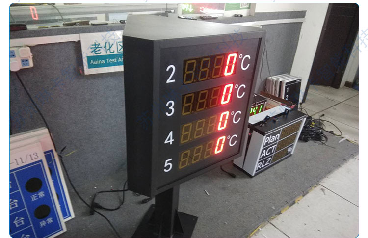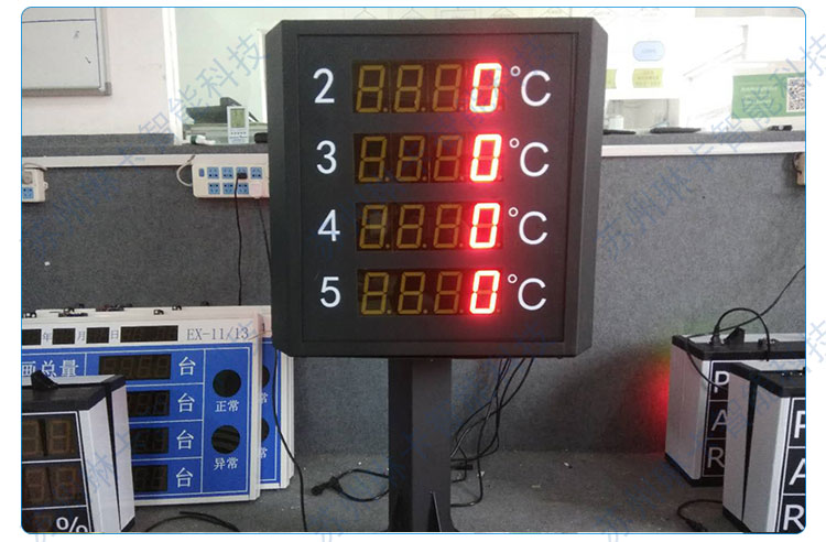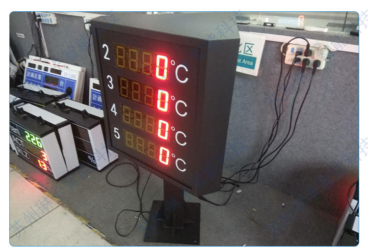 3. 4路溫度數(shù)據(jù)在電子看板三面同步顯示。 "/>